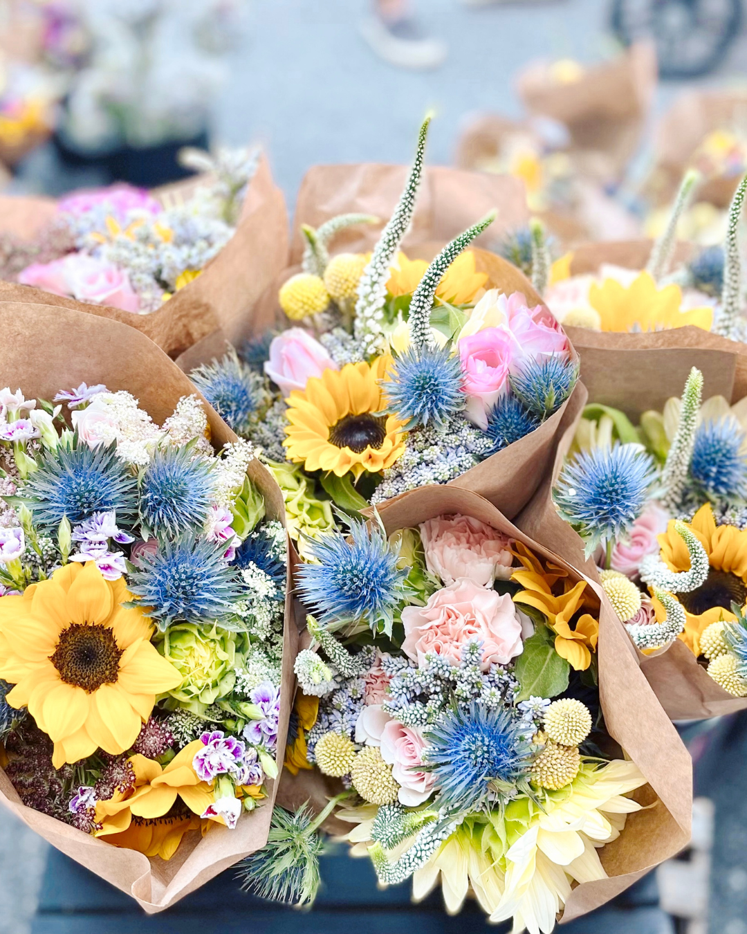 • Retail-ready delivery – pre-made bouquets wrapped in brown paper (never plastic)